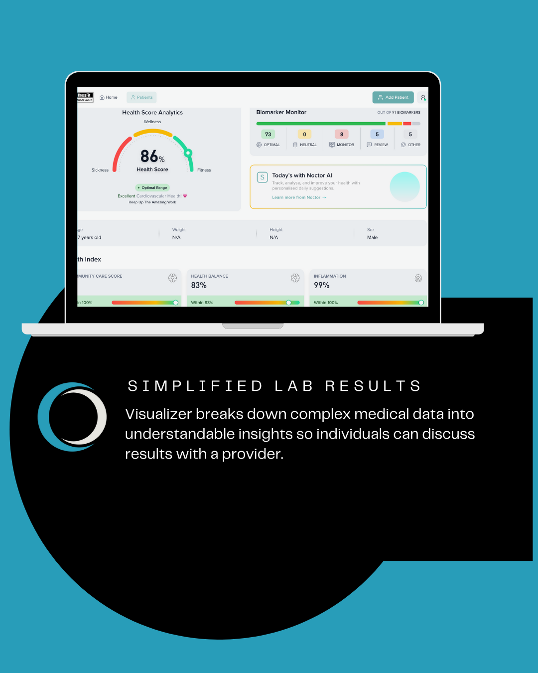 The Visualizer is your personal health command center — uniting all your key metrics in one place. It’s more than data; it’s a clear, visual snapshot of your entire health journey.